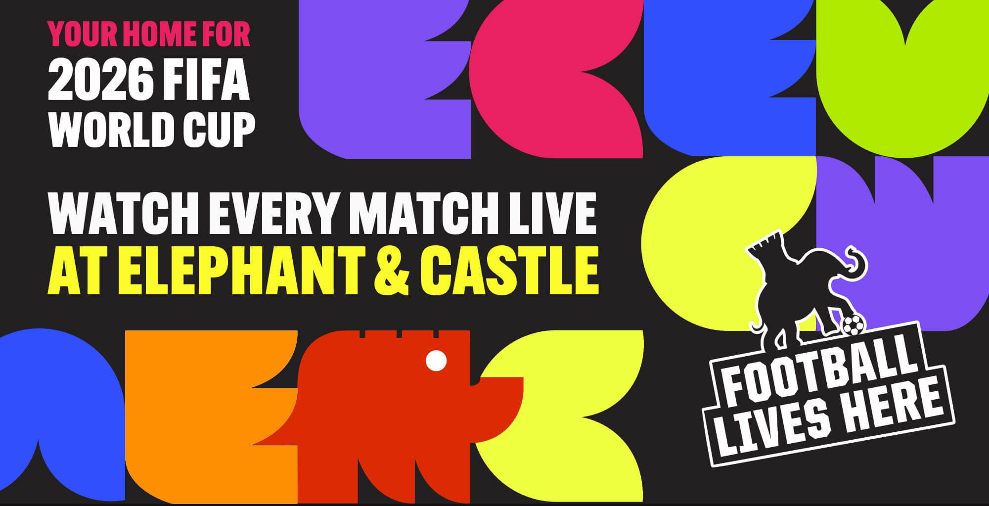 Whether the match is happening down the road or across the continent, every Elephant & Castle will be showing every World Cup match live.